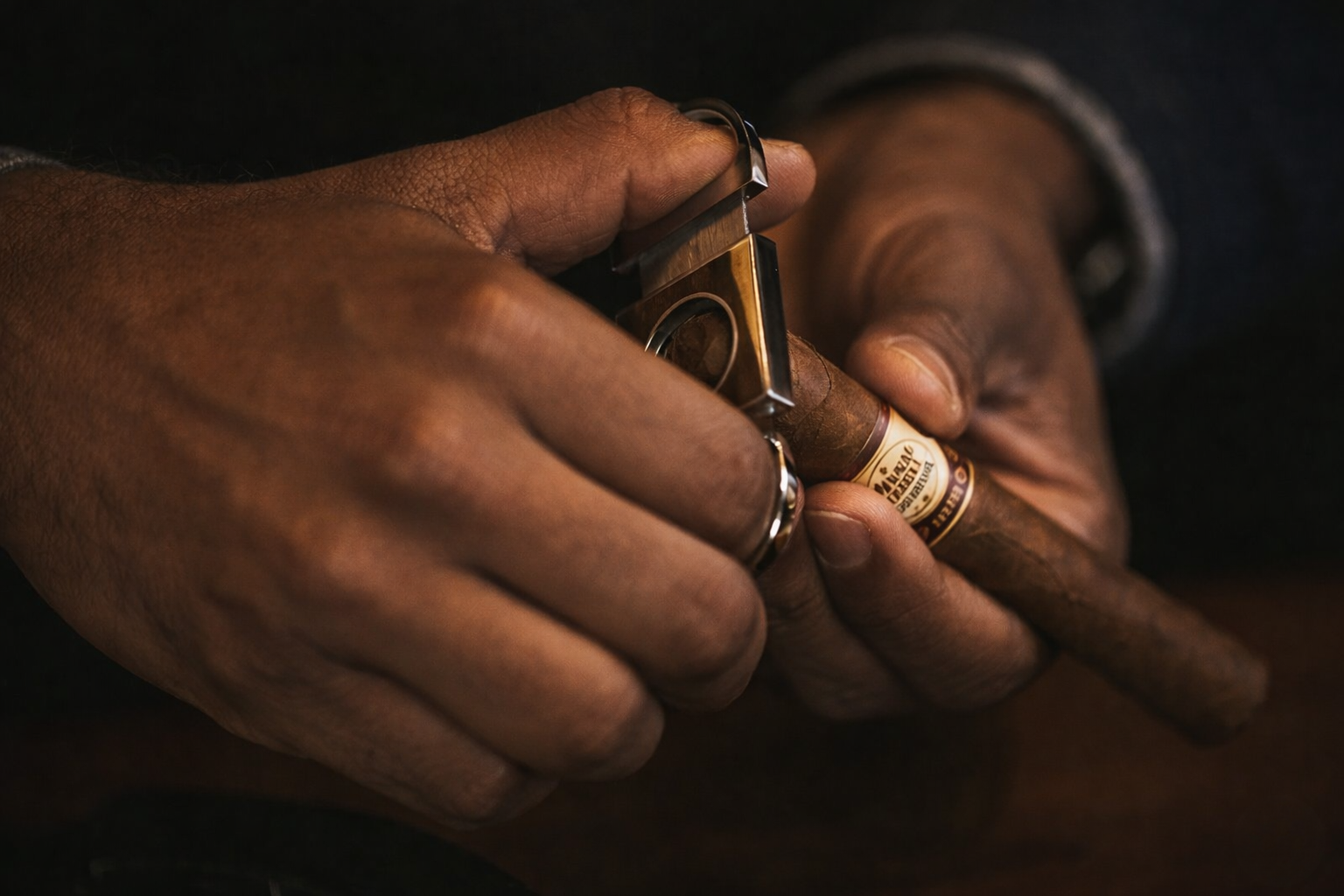 The weight of the provision. A deliberate alignment of tobacco and spirit, defined by the precision of the blade and the clarity of the glass. It exists where the occasion finds its focus.